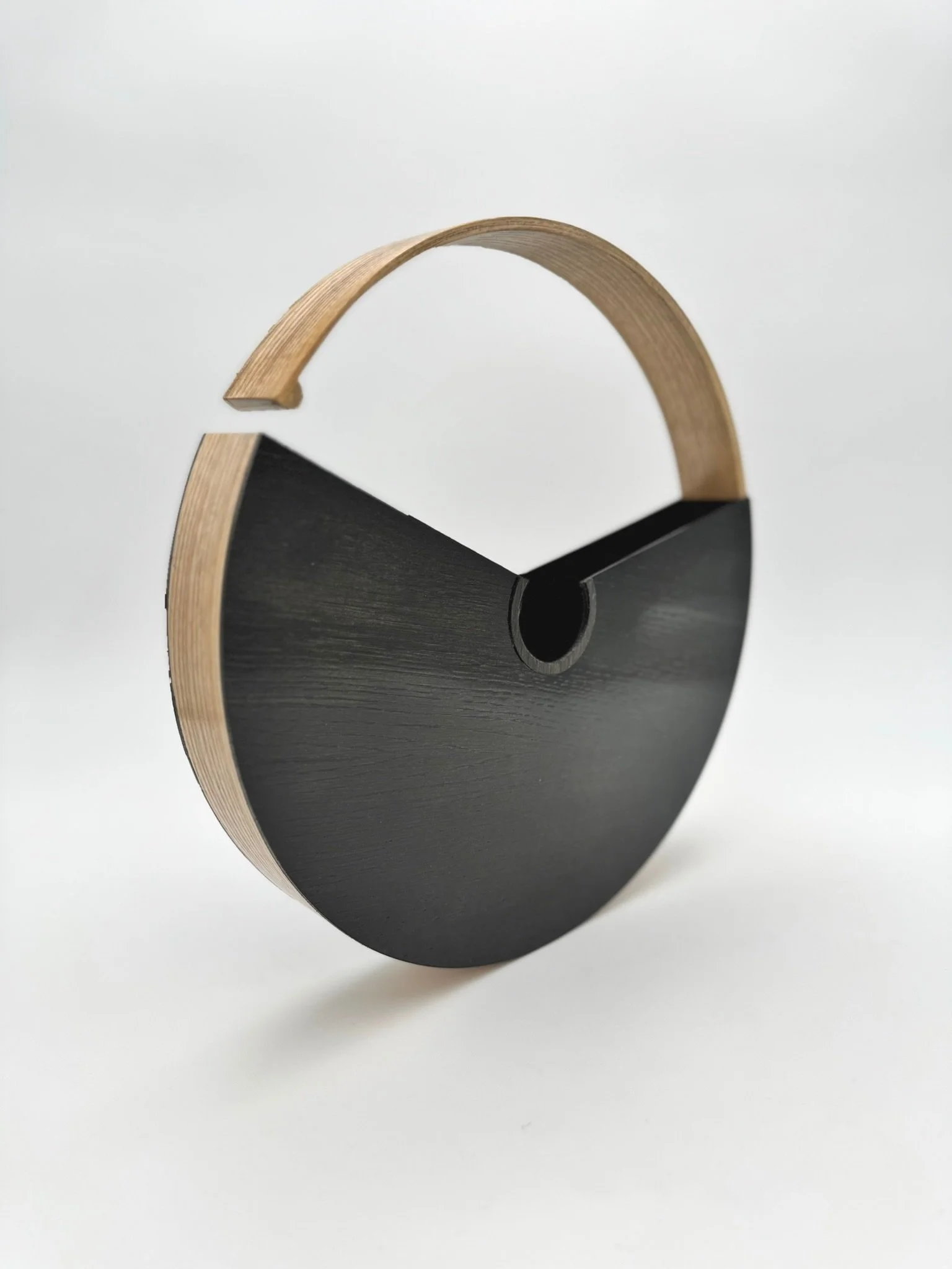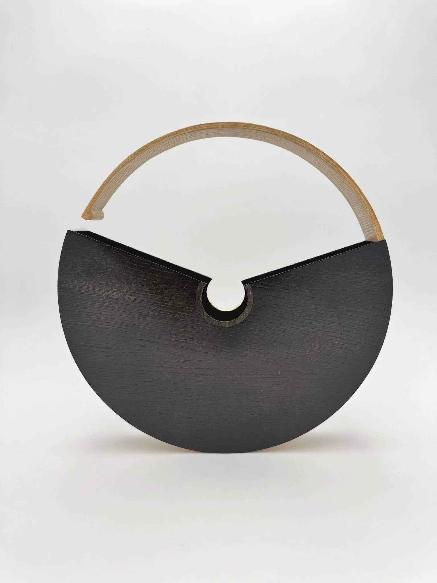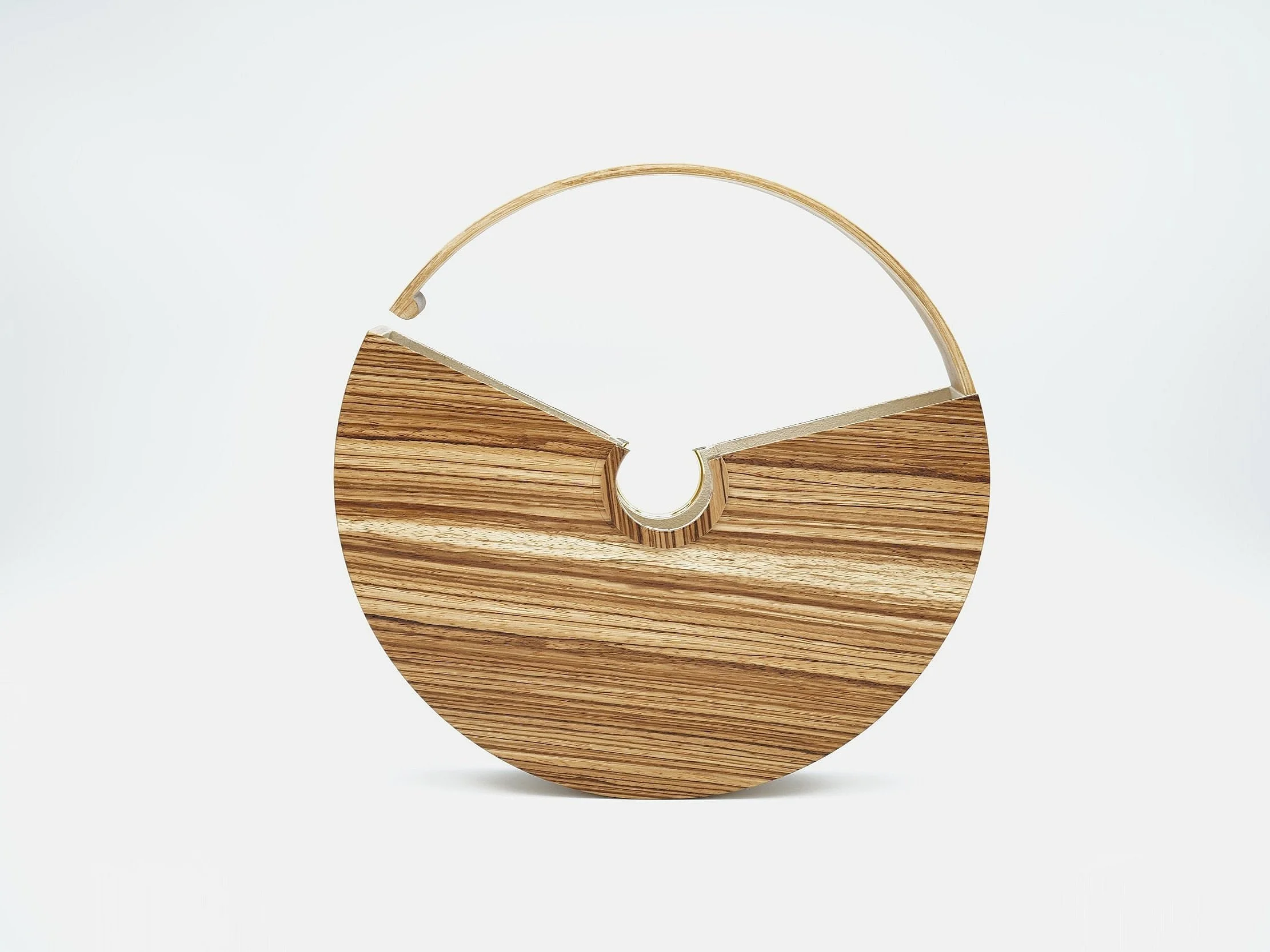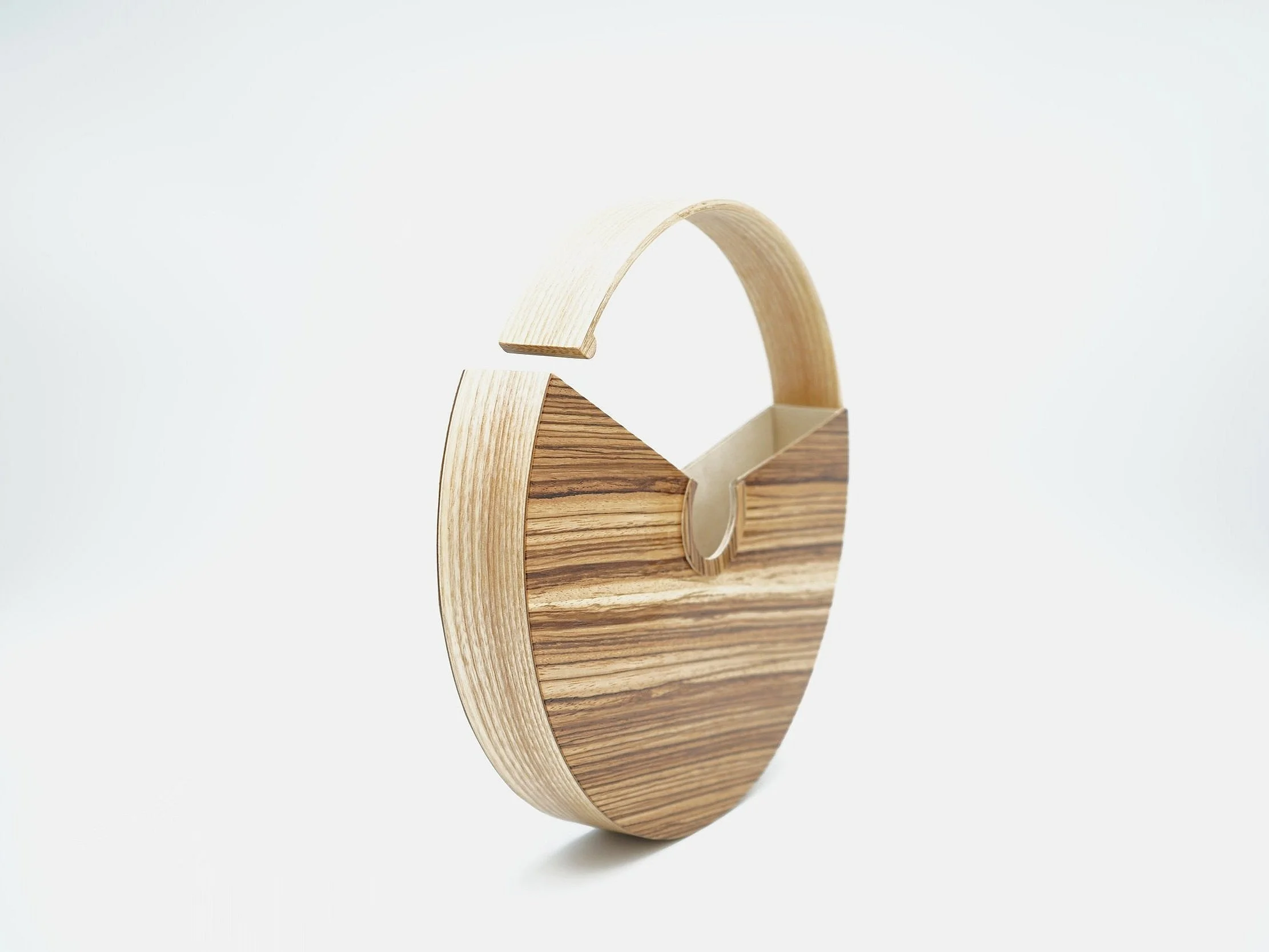 Handmade tote made of select zebrawood and ashwood meticulously crafted to create a stunning and functional presentation of artistic form and function.